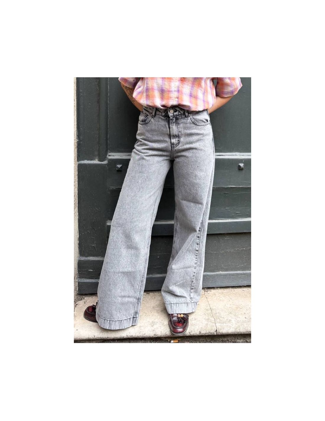Le pantalon PACIFIE de HOD Paris sur la collection automne hiver 2025 en jean gris 100% coton est un pantalon taille haute évasé.