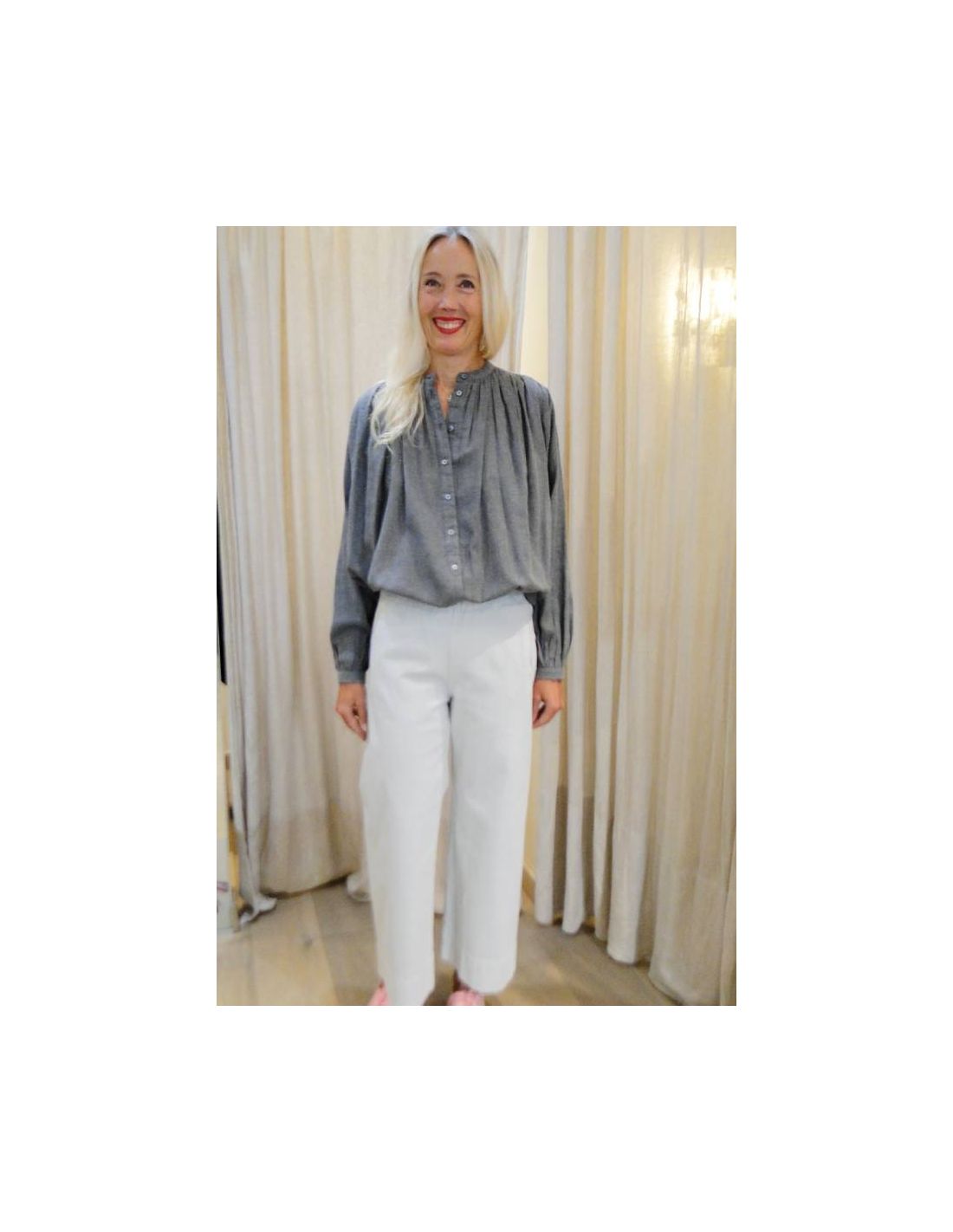 Pantalon large JIMMY en coton cloud (gris perle) de HOD Paris